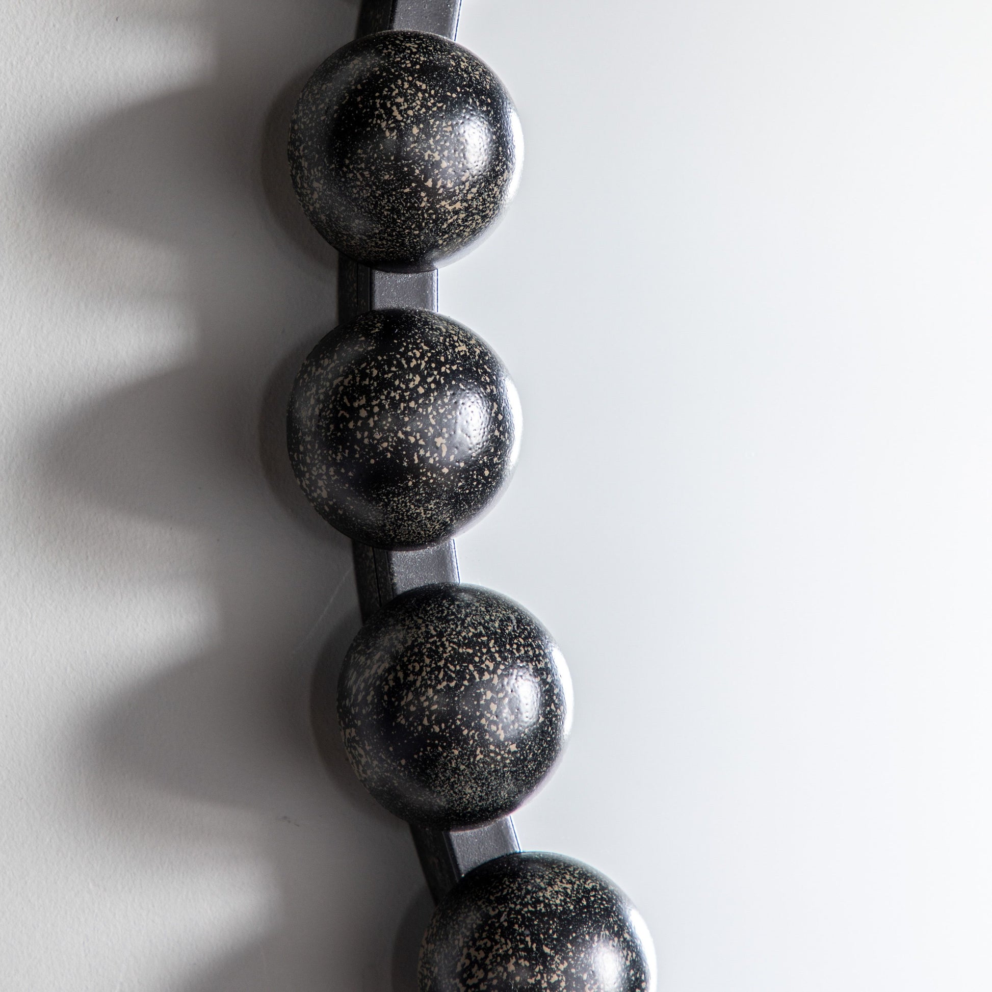 Inspired by high-end design this mirror features an oversized beading style design with a bold black finish frame. Simple yet beautifully round design this Ceretti mirror is a striking and stylish addition to bring a room together.