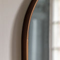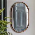 This elipse mirror features a sleek and stylish metal frame in an aged bronze finish. Also available as an arch leaner mirror and a round mirror. They look great used individually or paired together.