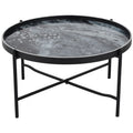 Our Monochrome Swirl statement coffee table is designed to compliment our best selling Set of 2 tray tables of the same collection. Measuring 80cm diameter, this large circular coffee table features an abstract molten swirl motif and comes on a beautiful black metal frame and with hand painted silver rim. The tray is removable and the base is foldable for storage. Completing the Monochrome Swirl collection, this design is also available as a Set of 2 Nesting Side Tables and a Set of Coasters.