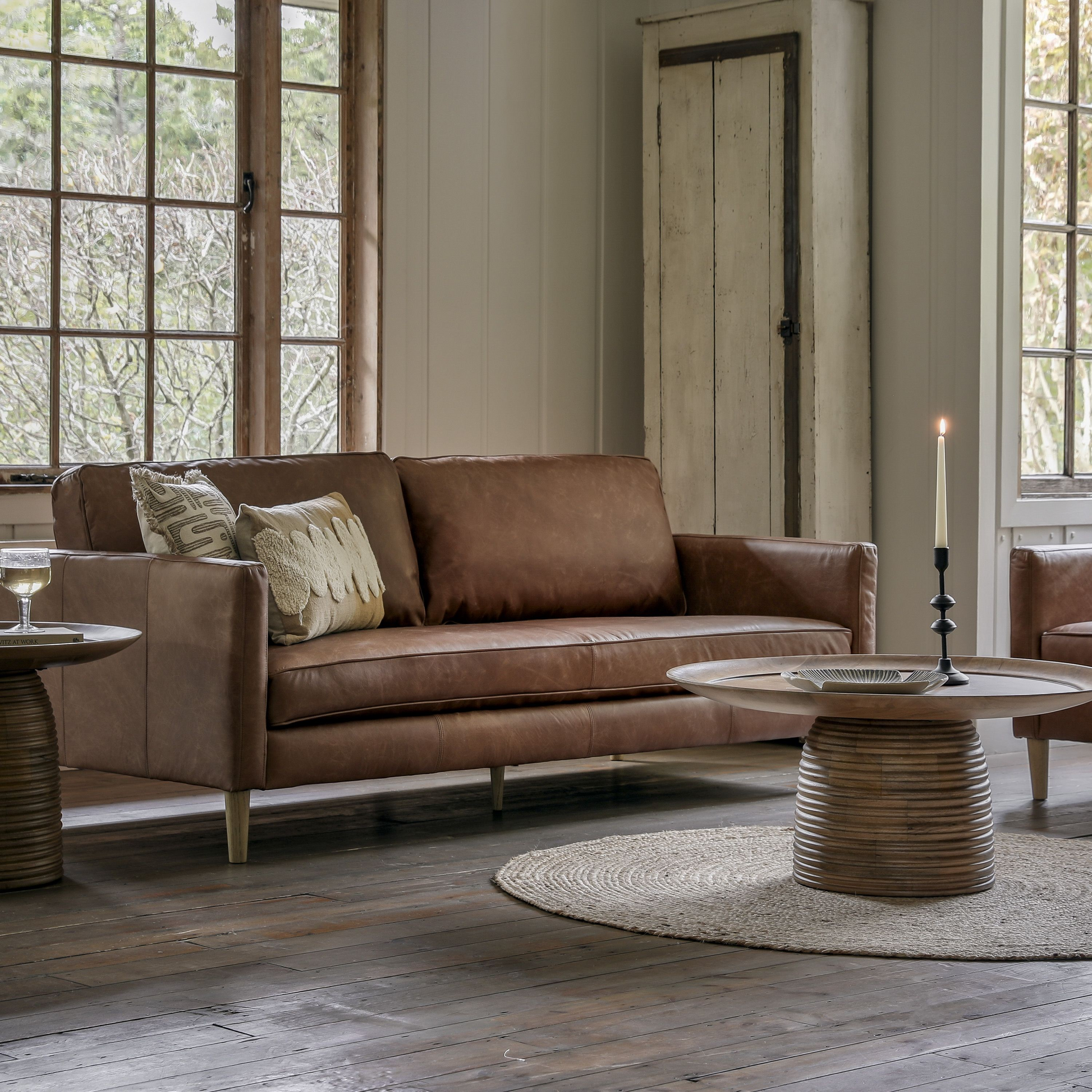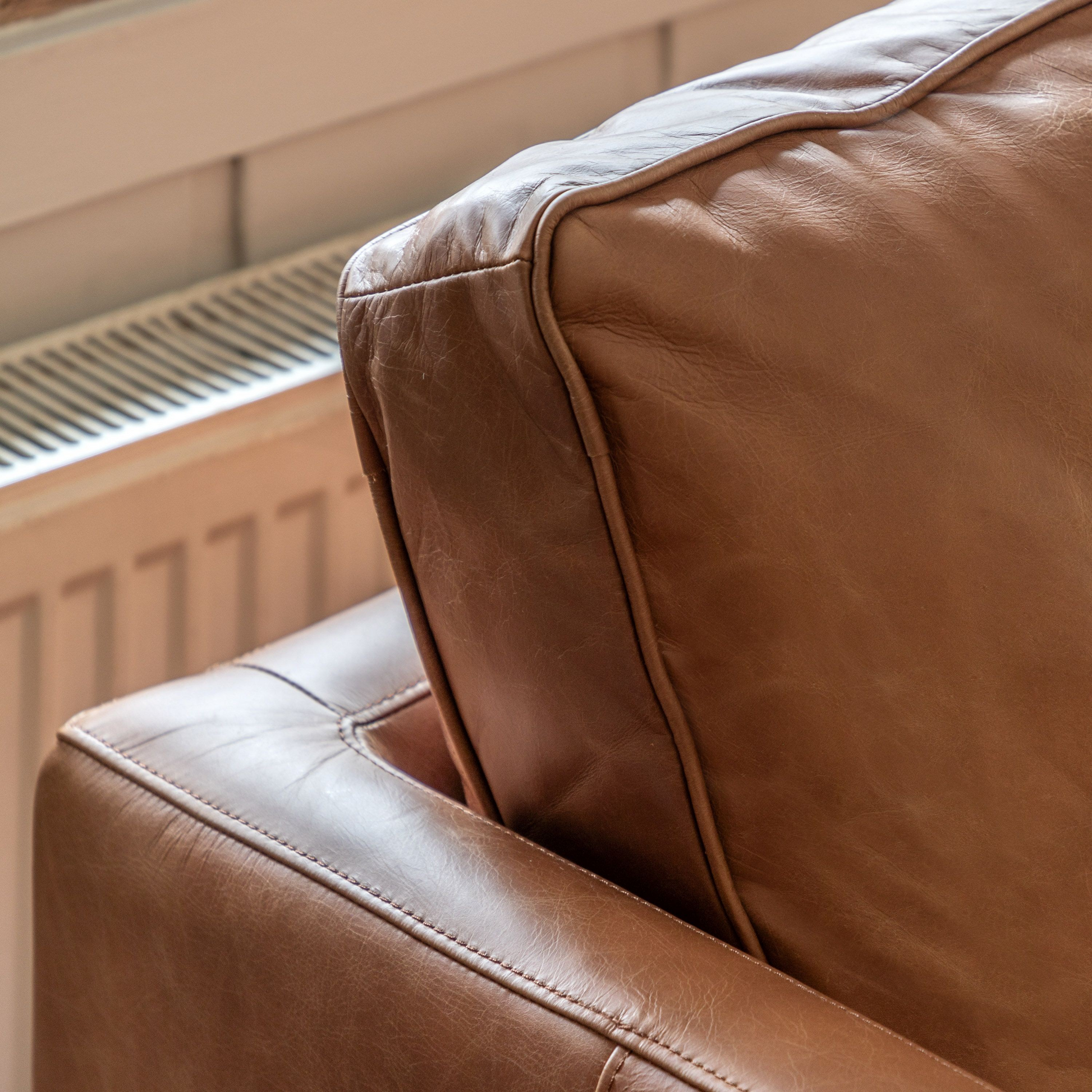 This simply stylish 3 seater sofa would suit a wide range of interiors with ease. It is upholstered in top grain full leather hide in a warm brown hue, which looks lovely with the ash legs. A matching armchair is available to give a coordinated look to a room.