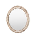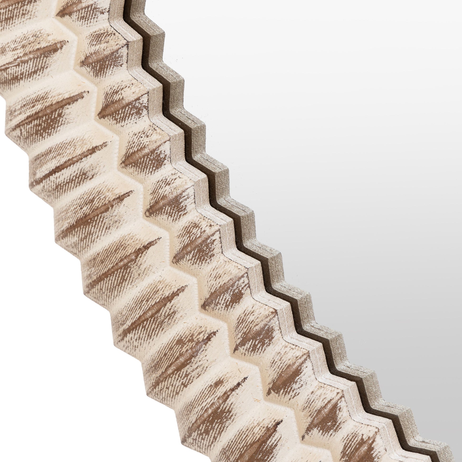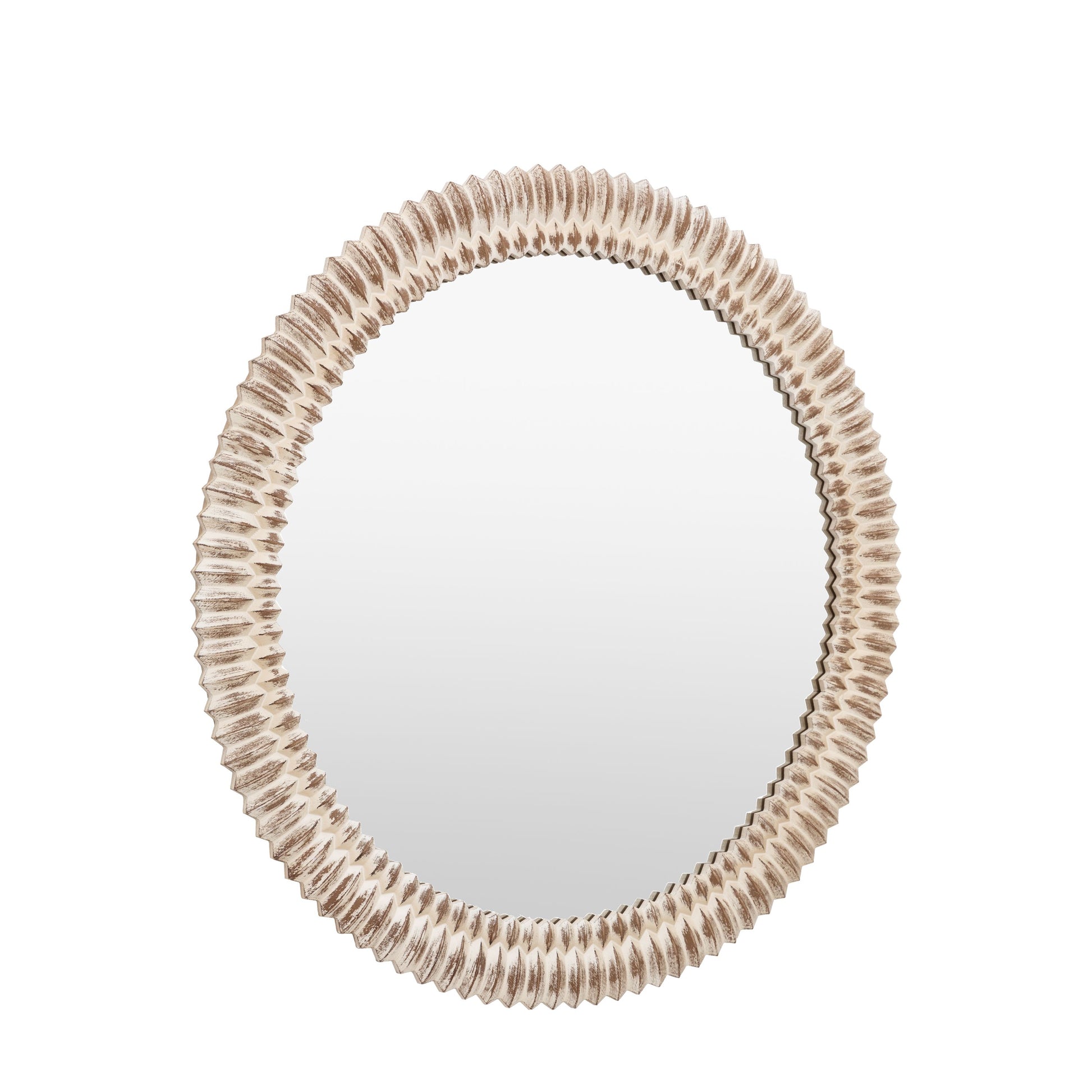 Enhance your space with our round mirror, distinguished by a captivating 3D wooden etching style frame and a chic whitewash finish. The intricate etching adds a rich, textured dimension, while the whitewash treatment brings a soft, coastal charm to the wood, highlighting its natural beauty. This combination of detailed craftsmanship and elegant finish makes the mirror a versatile statement piece for any room. Ideal for living rooms, bedrooms, or entryways, it not only reflects light but also infuses your home with timeless style and sophisticated grace.