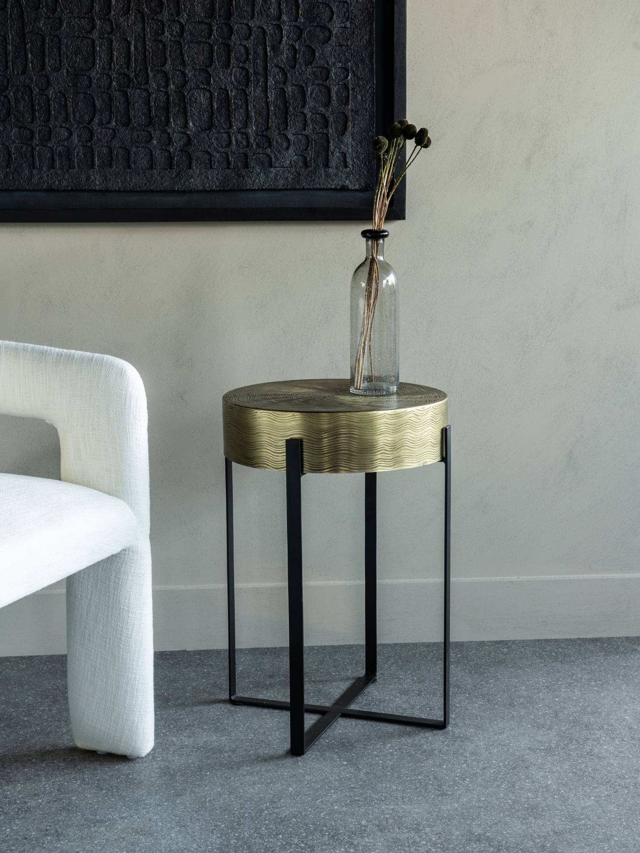 Iron Side Table with etched and antiqued finish in this collection there is also a matching Coffee Table.