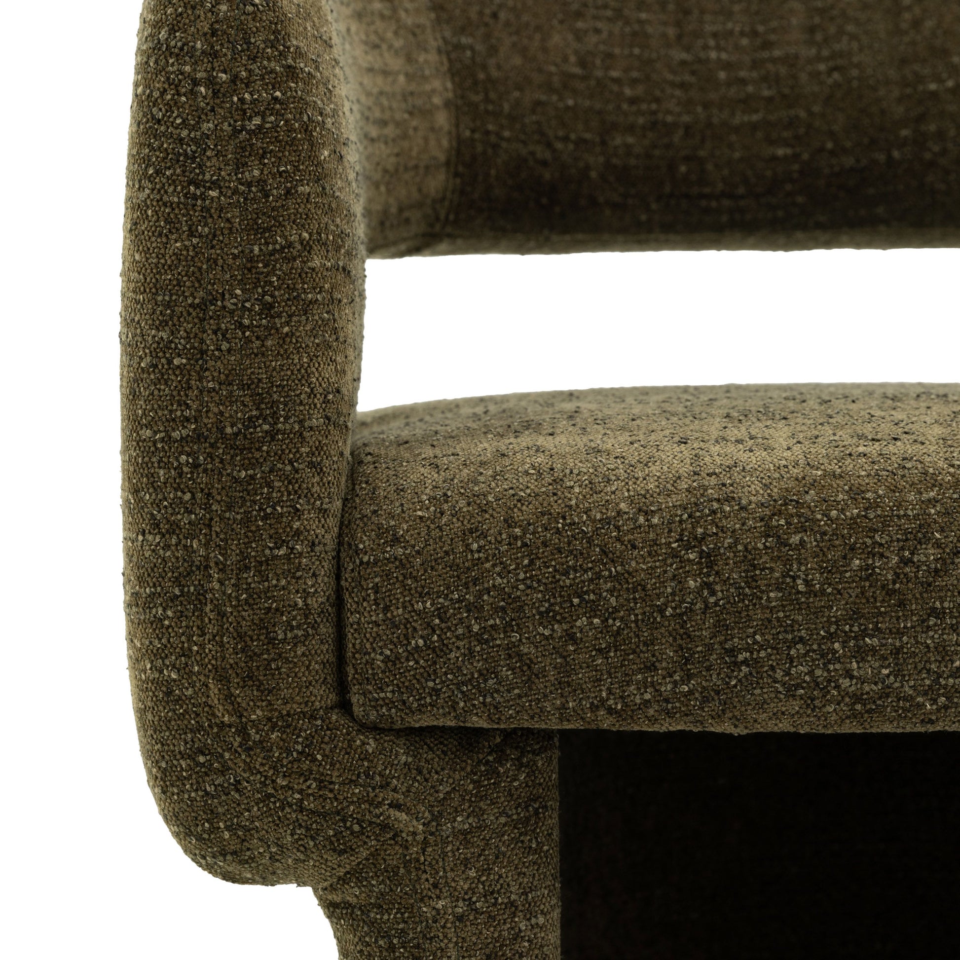 Ideal for creating a chic and comfortable dining experience, this chair combines modern aesthetics with high-quality craftsmanship. Elevate your dining space with the refined charm of our curved back contemporary dining chair in green boucleÔÇöwhere style meets sumptuous comfort.