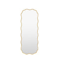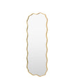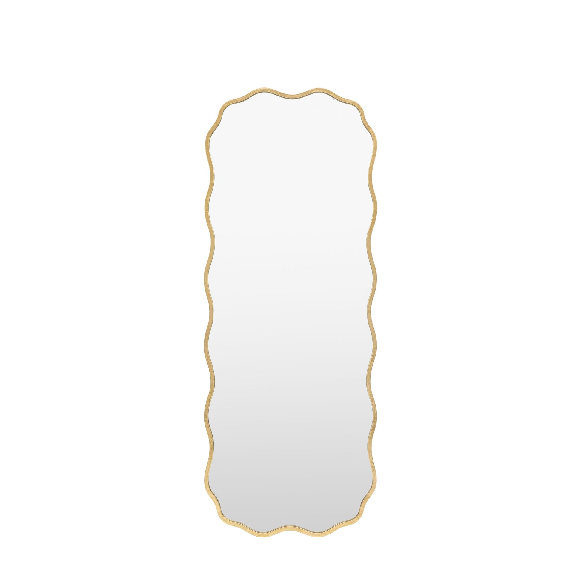 Add a dose of flair into your decor with our quirky round wavy edge leaner metal mirror in a rustic gold finish. Crafted from durable metal, this mirror combines a bold, unique design with high-quality craftsmanship.