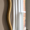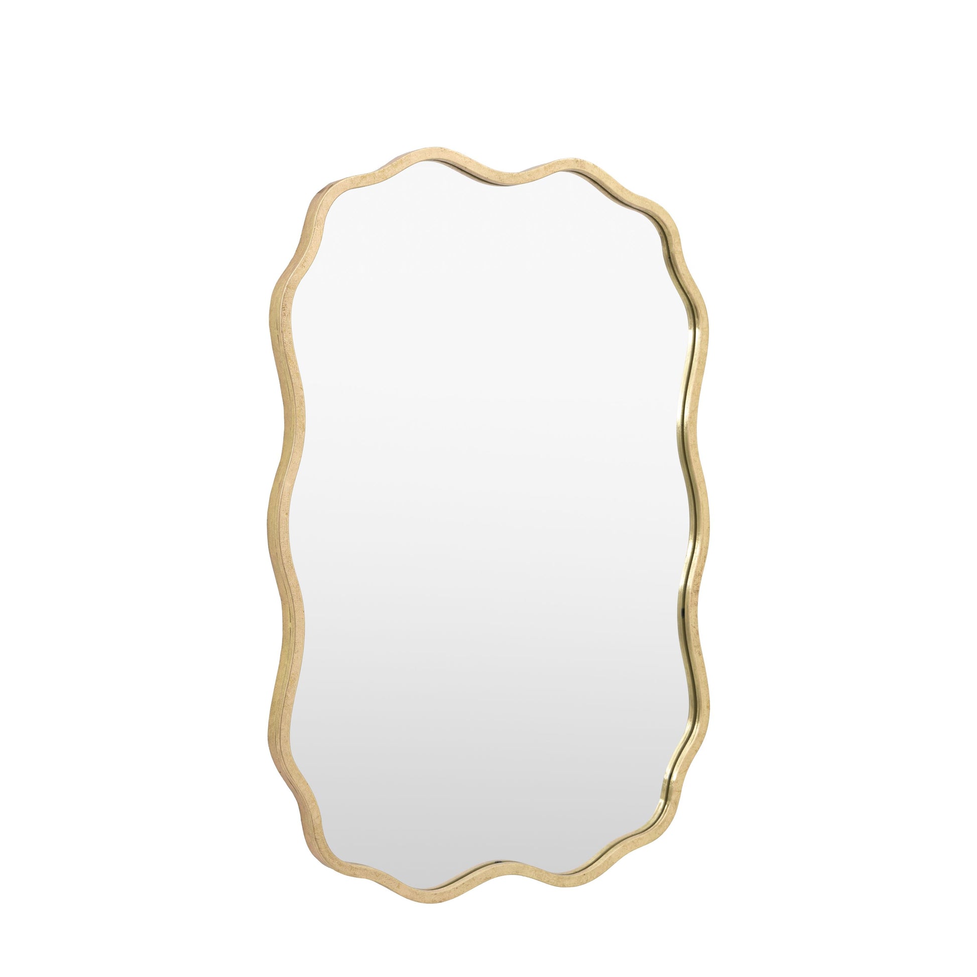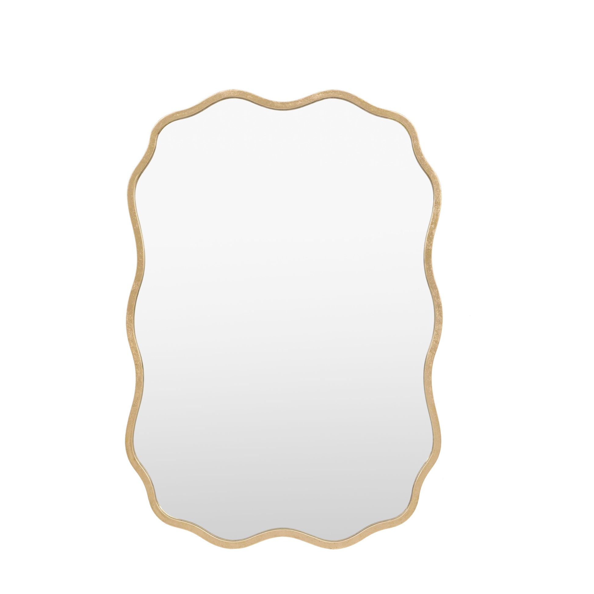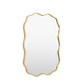 Add a dose of flair into your decor with our quirky round wavy edge rectangle metal mirror in a rustic gold finish. Crafted from durable metal, this mirror combines a bold, unique design with high-quality craftsmanship.