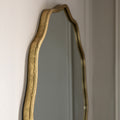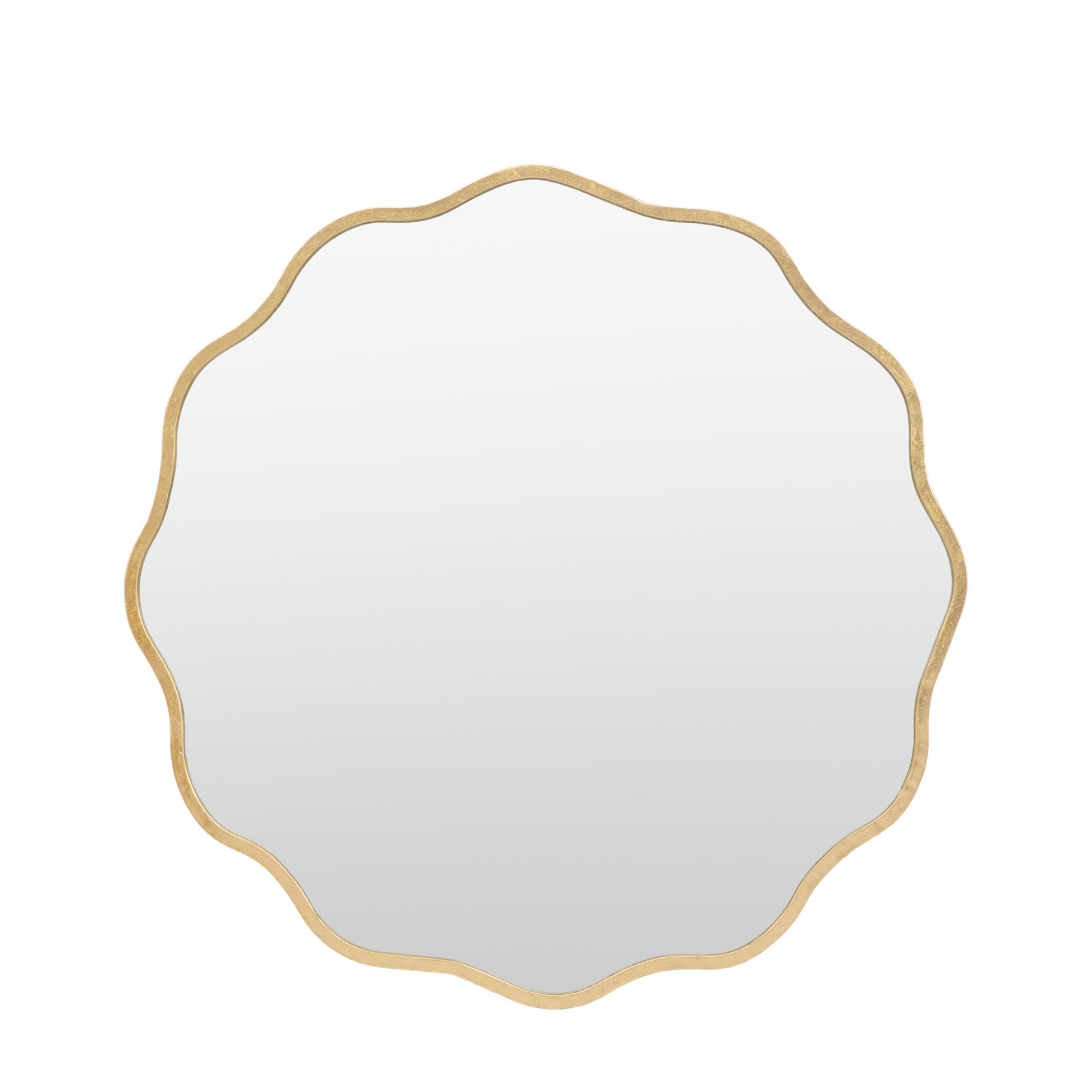 Add a dose of flair into your decor with our quirky round wavy edge round metal mirror in a rustic gold finish. Crafted from durable metal, this mirror combines a bold, unique design with high-quality craftsmanship.