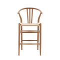 Set of 2 stand out wishbone back bar stools, perfect for modern or vintage inspired kitchens and dining spaces. A contemporary twist on a classic design, this bar stool features elegant sleek lines, a deeply curved back and a distinctive hand woven seat.