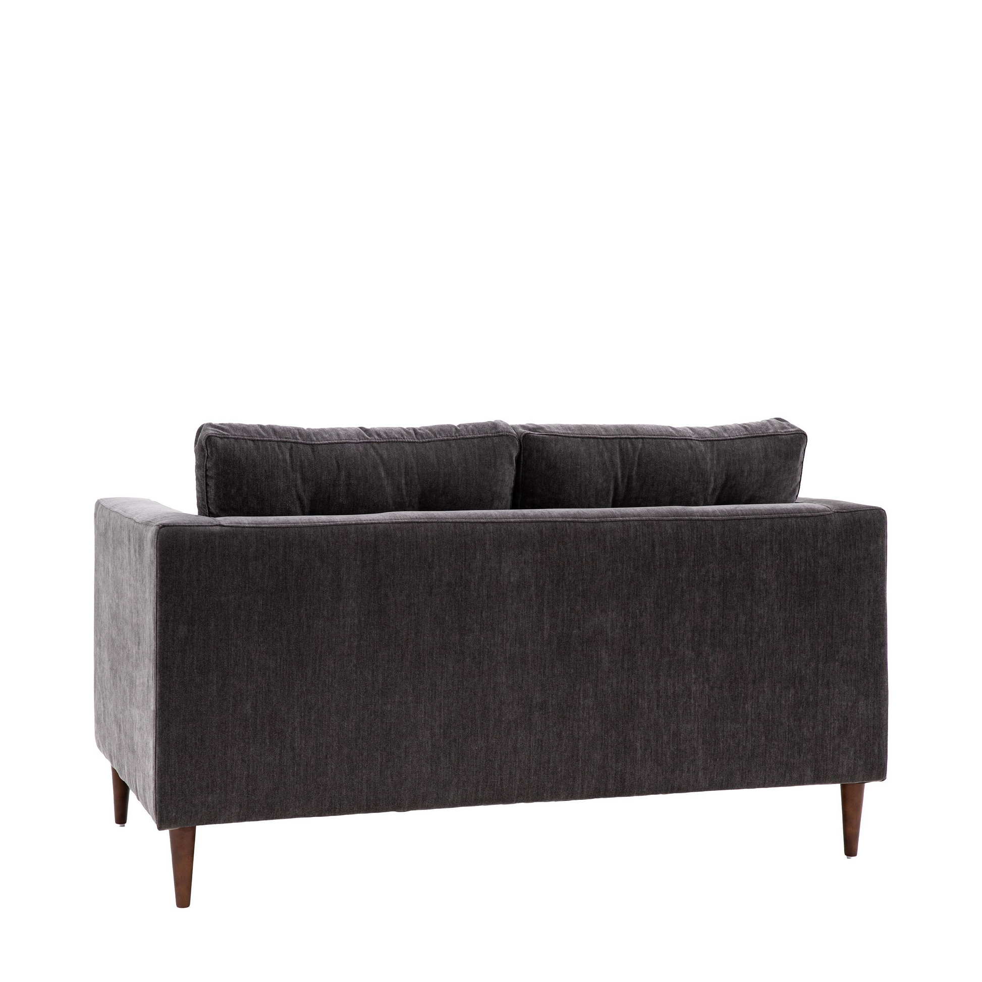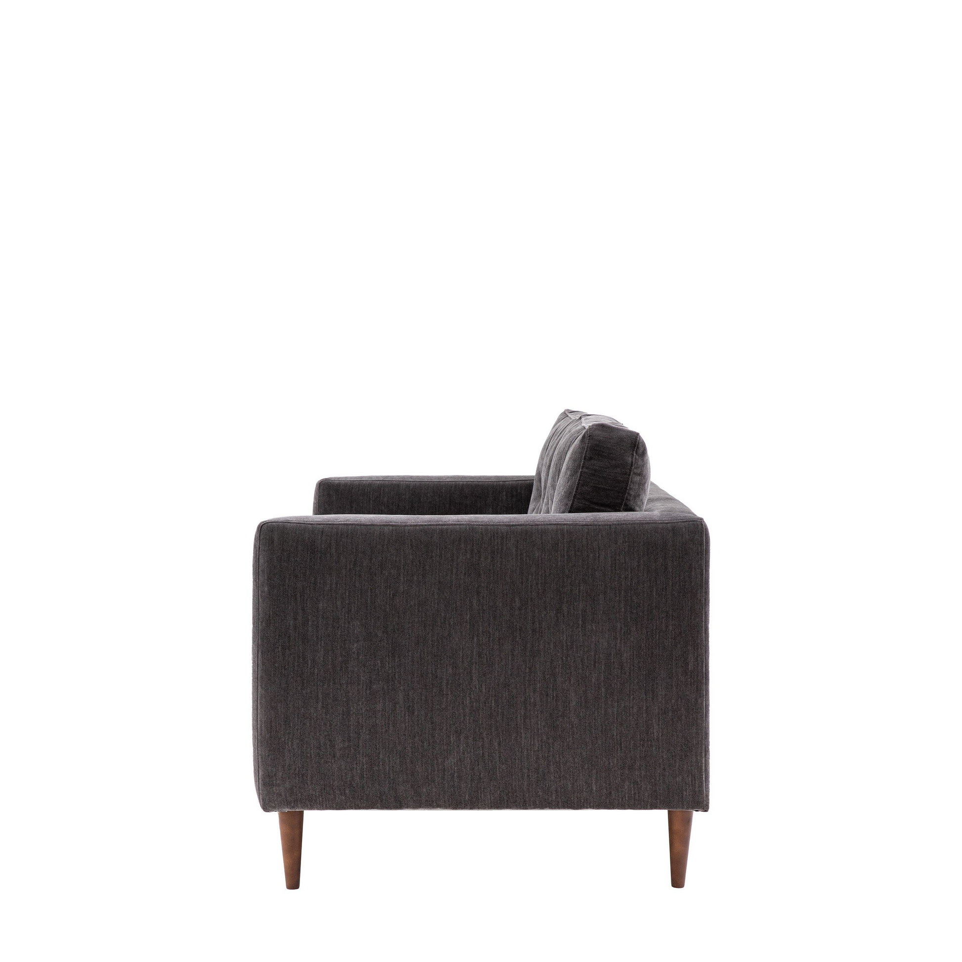 Ideal for contemporary style interiors, this lovely sofa features sleek lines with block arms and button detailing on the back cushions paired with elegant tapered wooden feet. It is upholstered in a lovely charcoal grey fabric but is also available in green and natural. A matching armchair and 3-seater sofa are available.