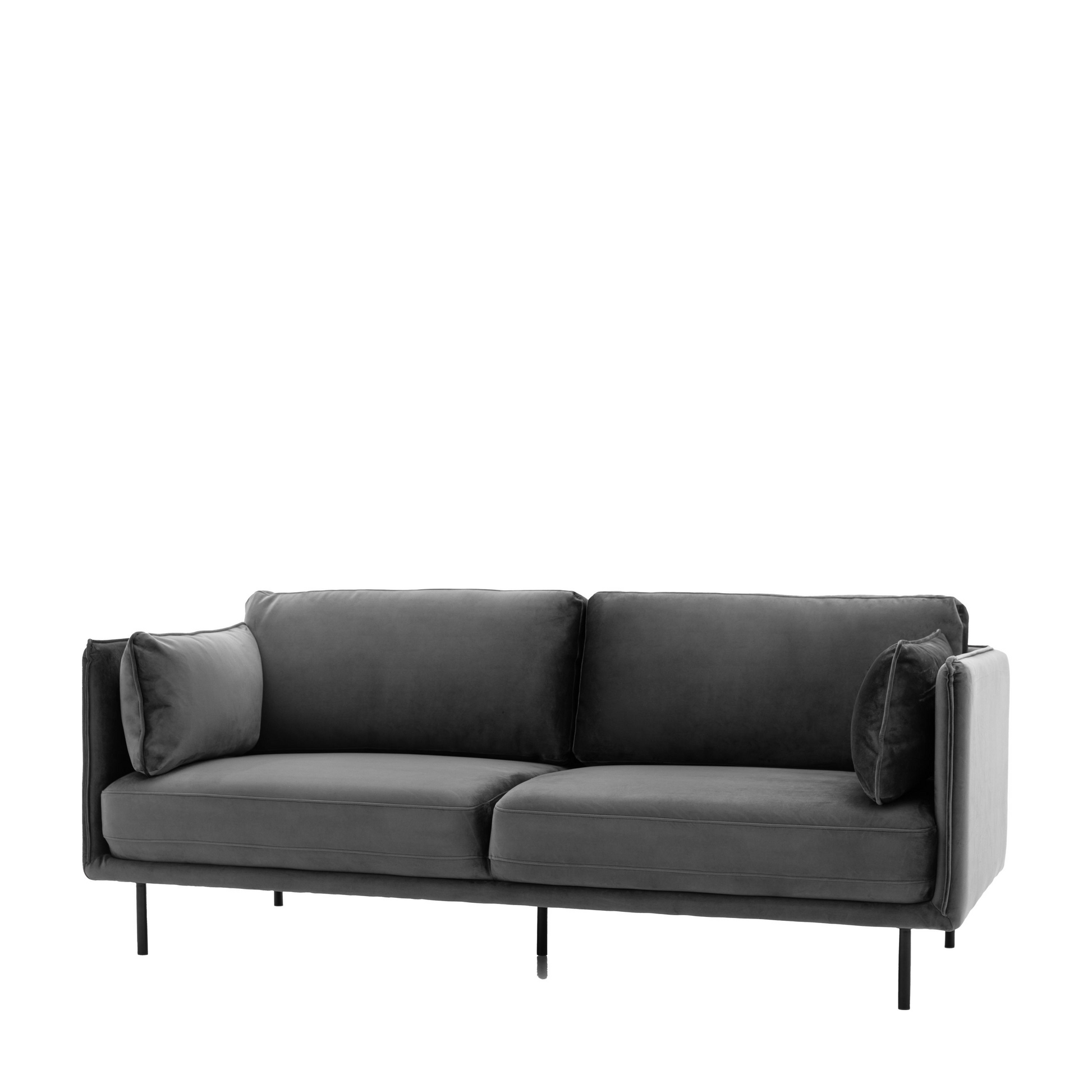 Offering a sleek contemporary look, this stylish sofa is fully upholstered in a lovely truffle colored velvet, with black metal legs perfectly complementing the design. The slim arms feature stitch seam detailing which is echoed on the side cushions. Also available in other colours.