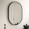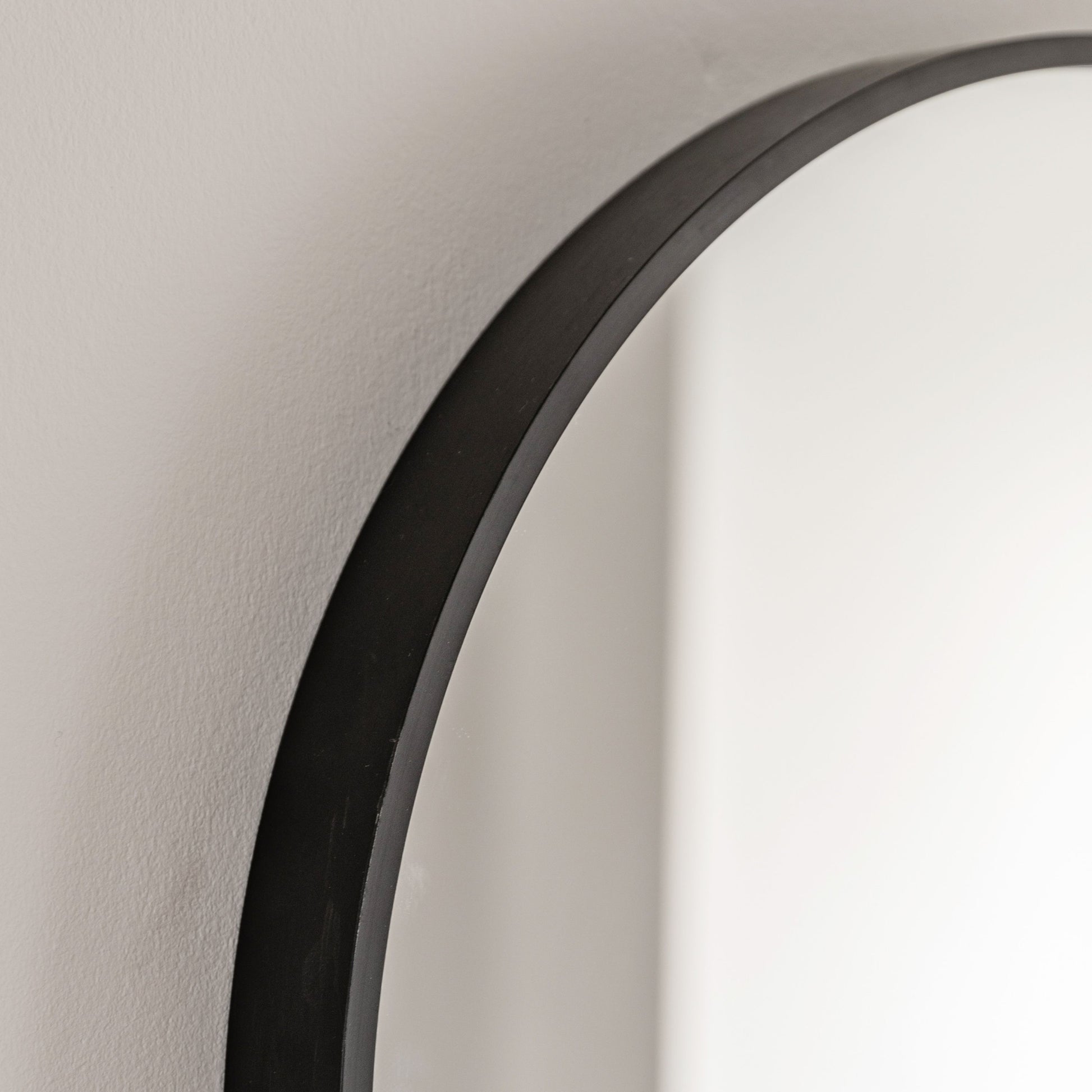 With friendly rounded shapes this mirror set in a simple black frame adds some clean modern lines to your wall. Available is 3 sizes